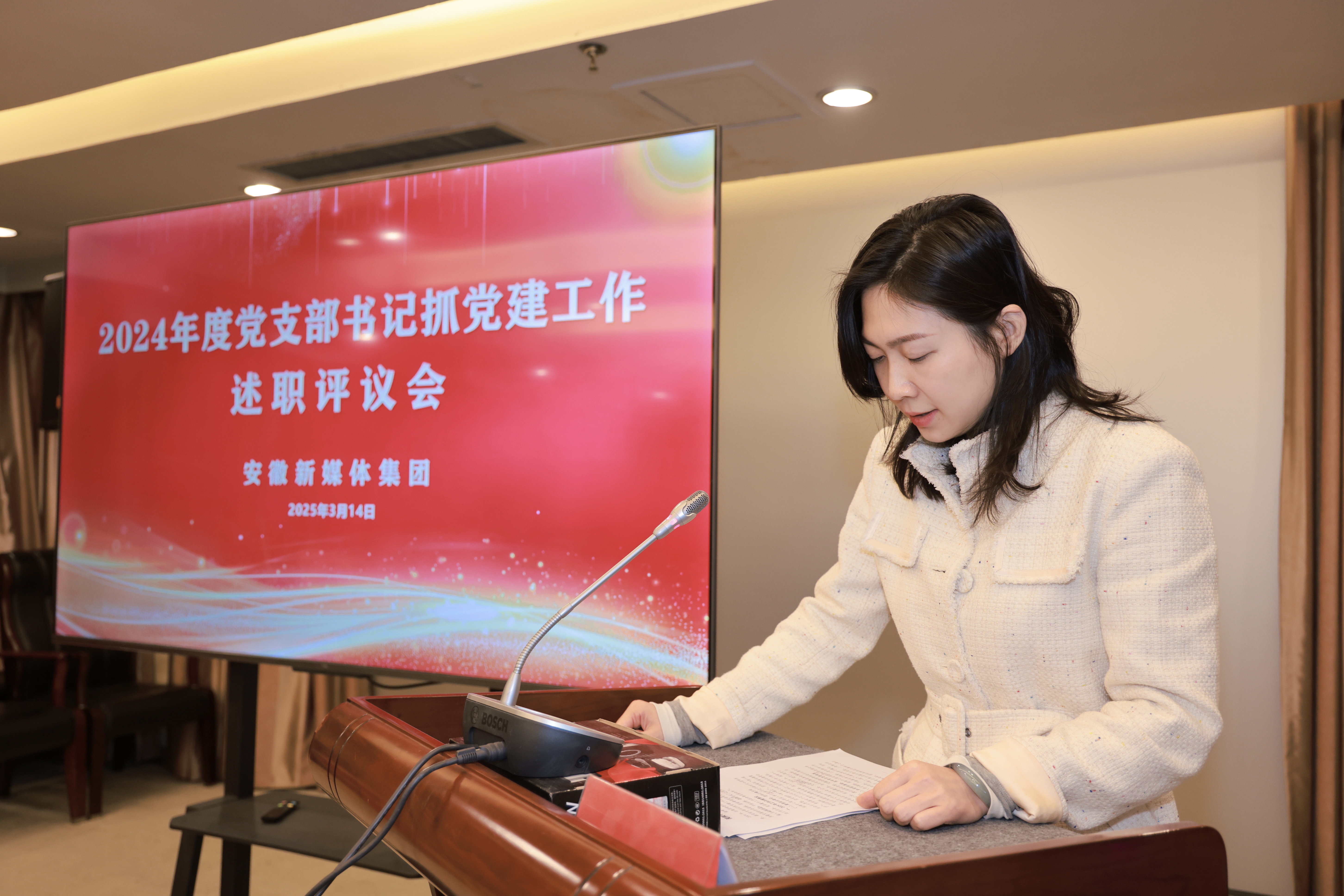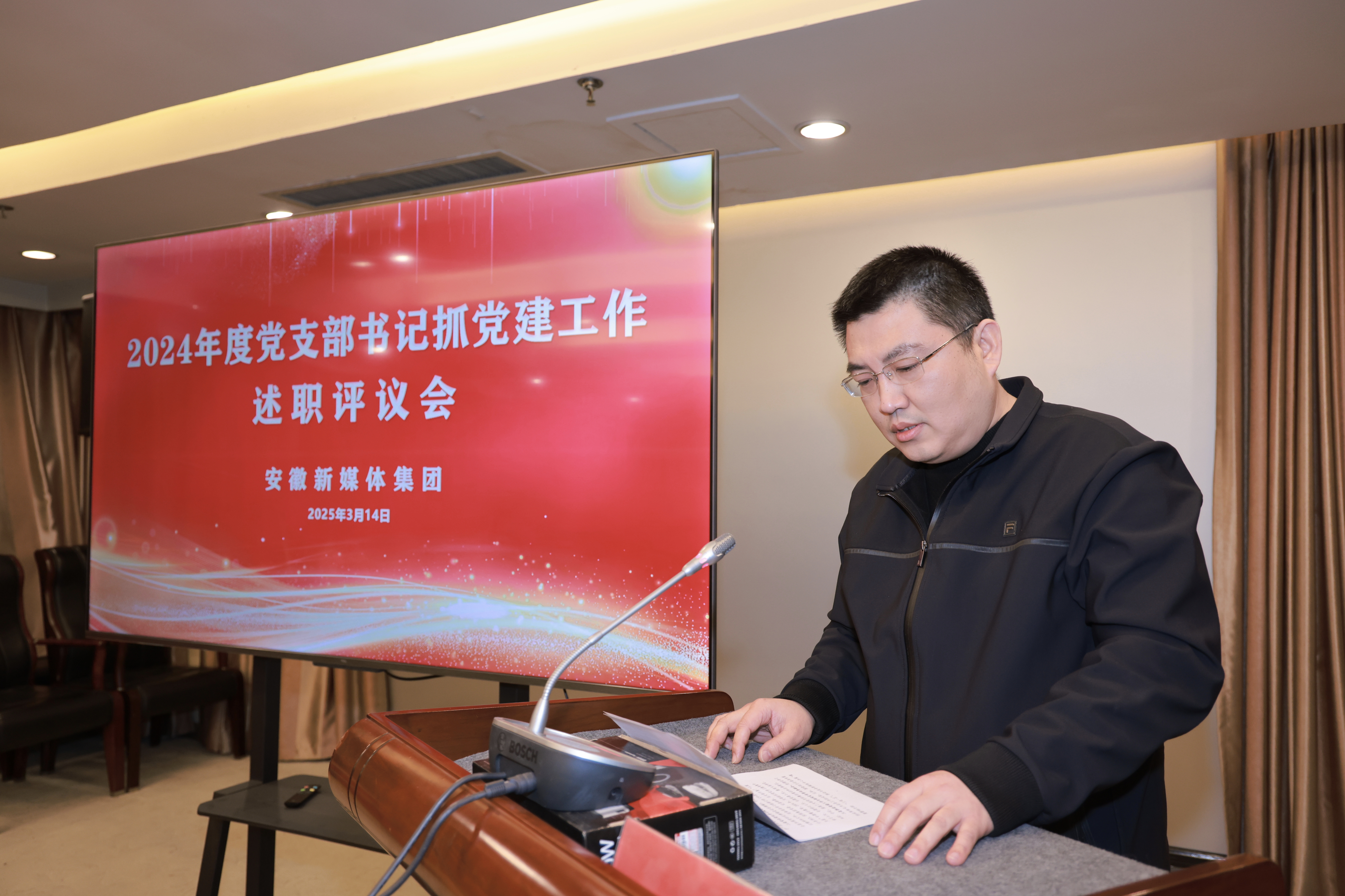 3月14日,安徽新媒體集團召開2024年度黨支部書記抓基層黨建工作述職評議會,對一年來集團各黨支部書記履職盡責情況和重點黨建任務落實情況進行全面檢視和總結。會議由集團黨委書記、董事長、總經理章理中主持,集團黨委班子成員,各黨支部書記、副書記以及部分黨員代表,有關政協委員及民主黨派人士參加會議。